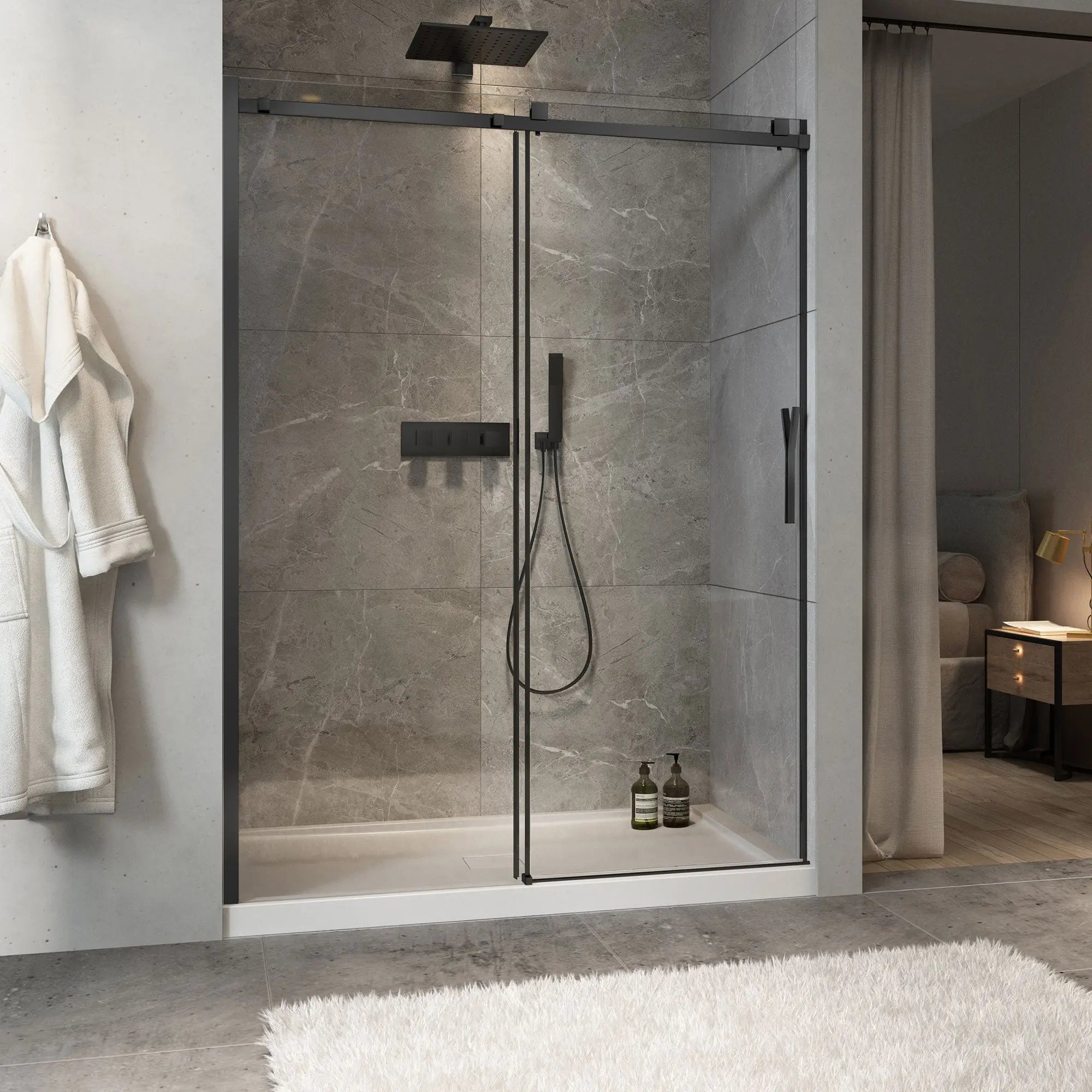 Zitta Shower door Minia alcove, 60", sliding, matte black frame and clear glass, Zitta collection DMN6000ASTC71