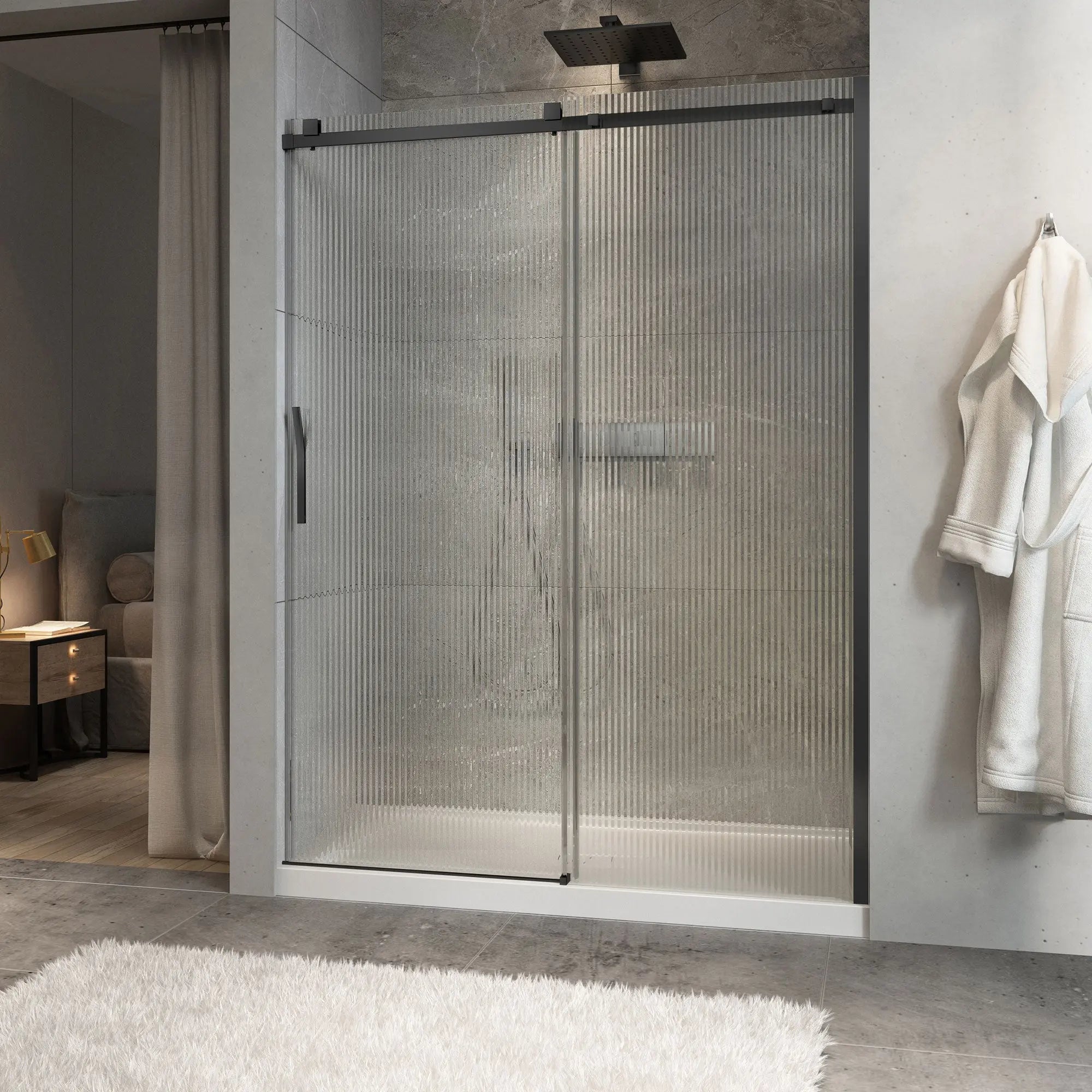 Zitta Shower door Minia alcove, 60", sliding, matte black frame and fluted glass, Zitta collection DMN6000ASTG73