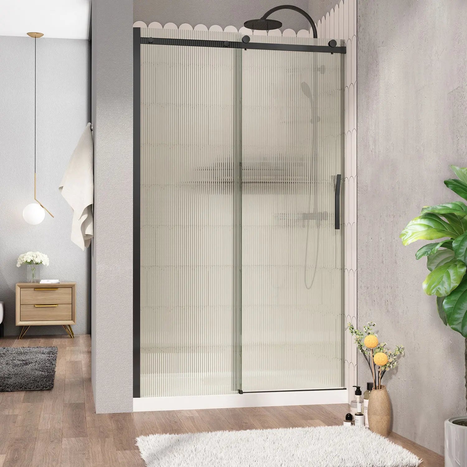 Zitta Shower door Vaia alcove, 48", sliding, matte black frame and fluted glass, Zitta collection DVI4800ASTH73