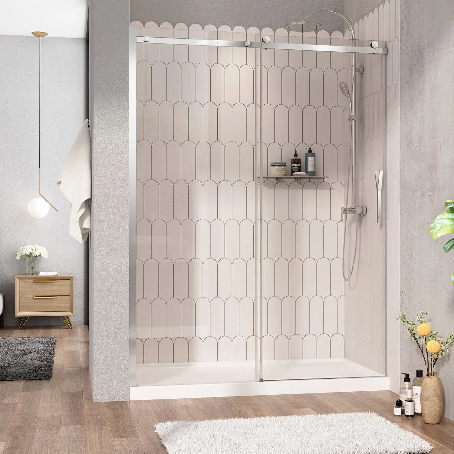 Zitta Shower door Vaia alcove, 60", sliding, chrome frame and clear glass, Zitta collection DVI6000ASTC21