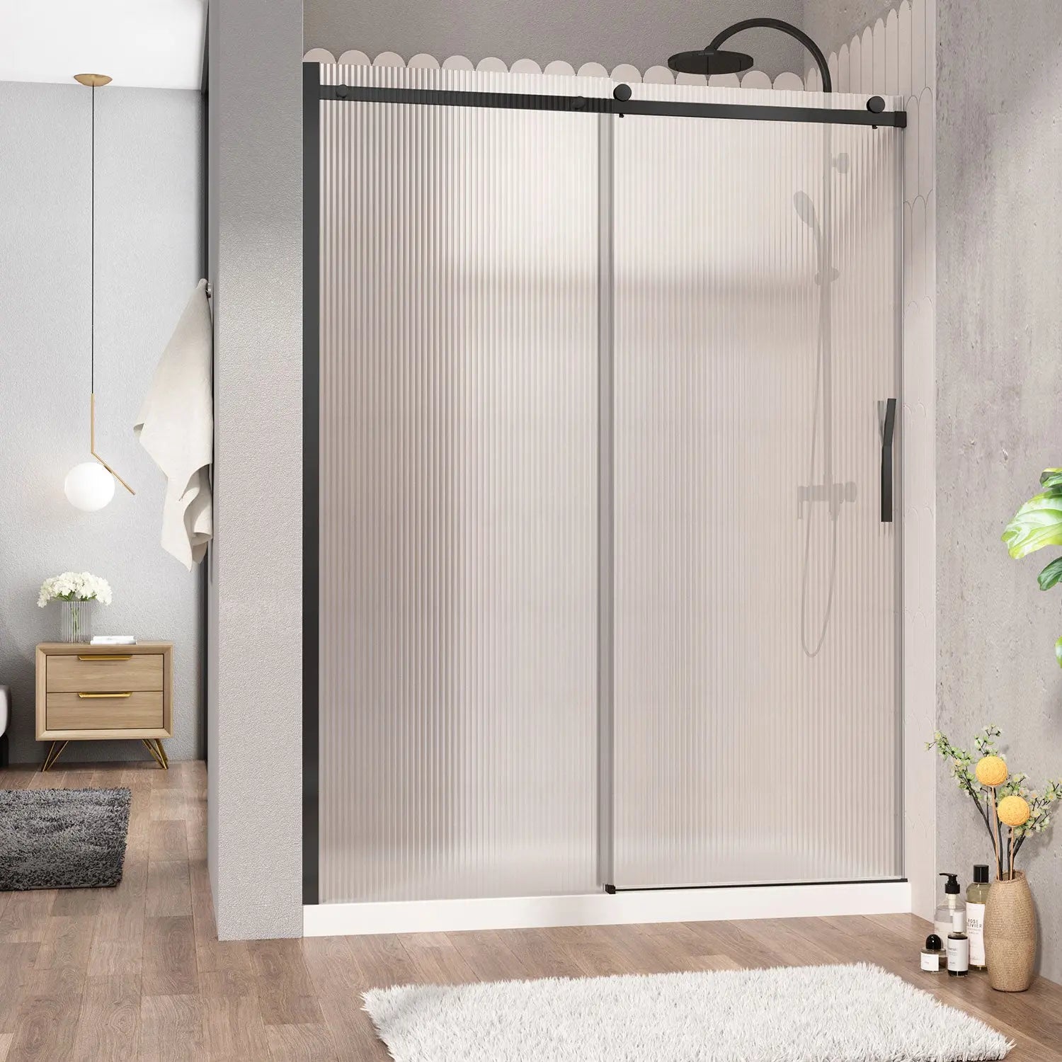 Zitta Shower door Vaia alcove, 60", sliding, matte black frame and fluted glass, Zitta collection DVI6000ASTH73
